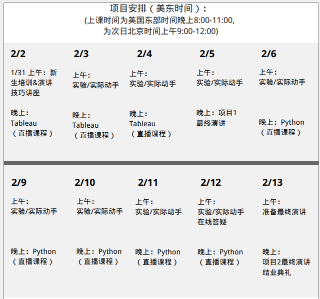 (项目授课时间美国东部晚上8:00-11:00,北京时间上午9:00-12:00)