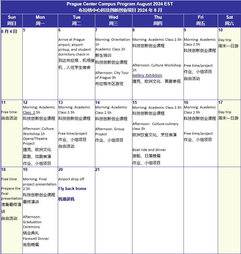 项目参考日程请参见下图,具体行程可能根据实际情况调整