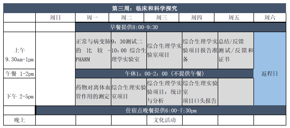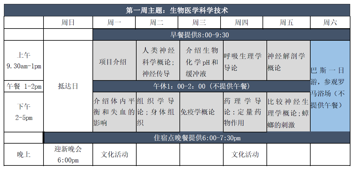 项目为期三周,课程安排样例(以下为2023年项目安排,2024年项目具体安排等待校方发布)
